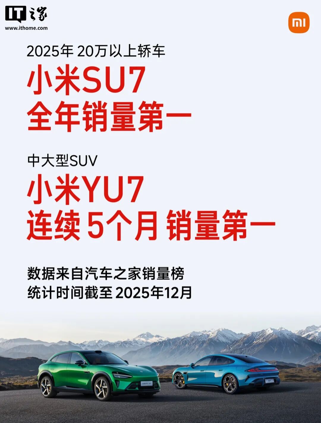 (1)小米SU7,是20万以上轿车,2025年全年的销量第一,数据来自汽车之家销量榜。